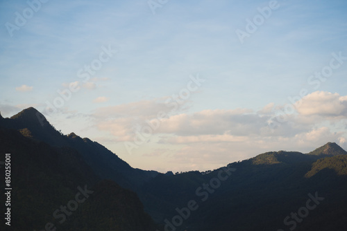travel in nature concept with tropical forest on mountain and clear sky in springtime season