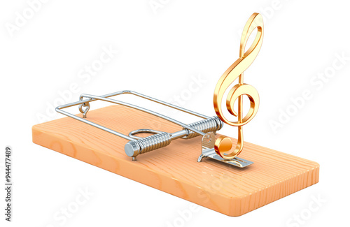 treble clef, mousetrap, trap, concept, three-dimensional, illustration, background, music, white, transparent, isolated, danger, media, broadcasting, singing, sound, melody, note, signature, song, entertainment, bait, fraud, lure, threat, hazard, temptation, risk, catching, trapped, conspiracy, dishonesty, captivity, catch, idea, metaphor, prohibition, impediment, suppression
