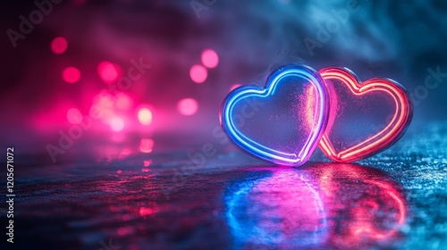 neon, valentine, heart, bokeh, glowing, digital artwork, pink, blue, modern, trendy, festive, celebration, romantic, vibrant, stylish, contemporary, colourful, bright, creative, cheerful