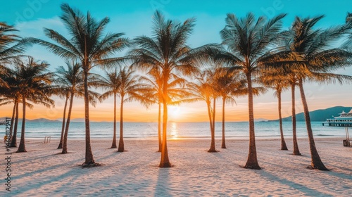 Tropical beach sunset with palm trees