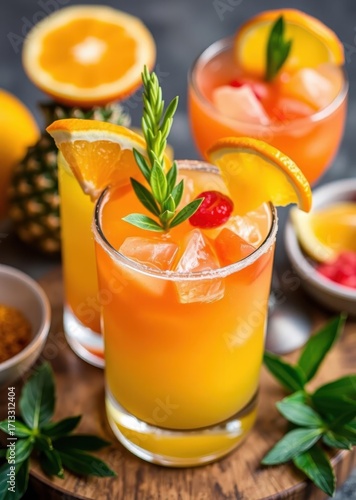 Tropical Cocktails with Citrus Garnishes drink, umbrella, cocktail, summer