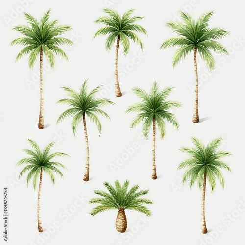 Tropical Palm Tree Vector Set Isolated on White Background.