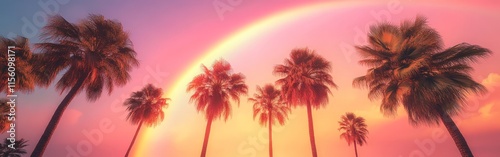 Tropical Palms Under Rainbow in Vibrant Paradise Scene