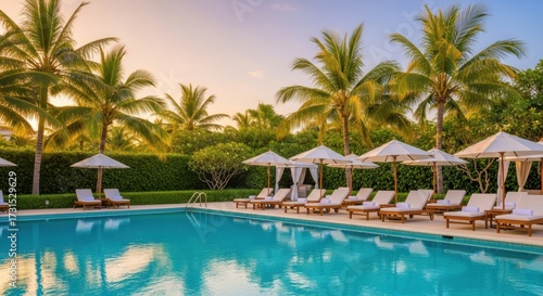 Tropical paradise poolside relaxation palm trees luxury resort getaway ambiance