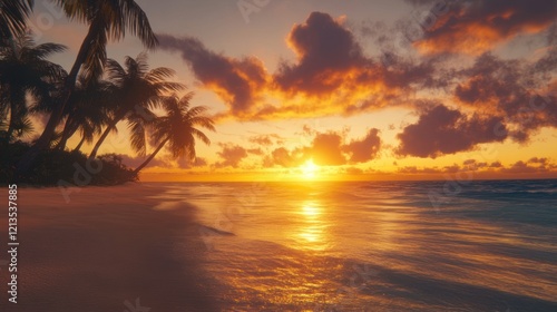 Tropical Sunset Paradise: Golden Hour on a Secluded Beach