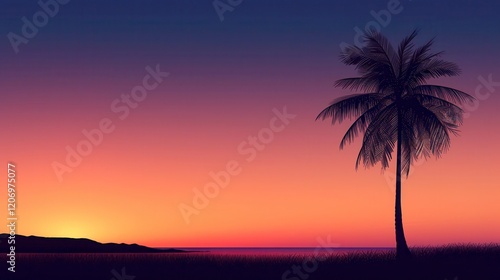 Tropical Sunset with Palm Tree Silhouettes and Colorful Sky
