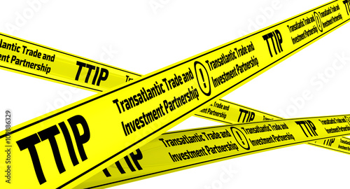 TTIP. Transatlantic Trade and Investment Partnership. Yellow warning tapes