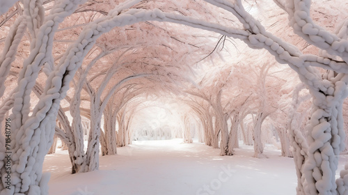 Tunnel of flower blossoms and petals blowing in the wind