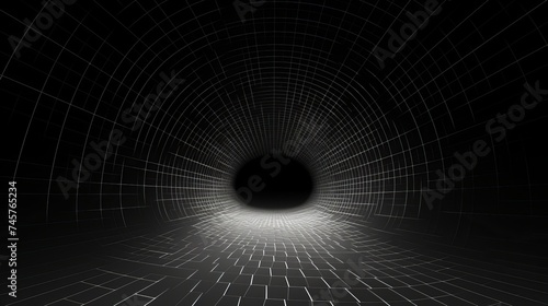 Tunnel or wormhole. Abstract Wormhole Science. 3D tunnel grid. Wireframe 3D surface tunnel. Abstract digital background
