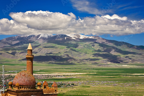 turkey, mosque, minaret, castle, mountain, national landmark, ottoman, persian, armenian, cloud, cloudscape, dome, fortified, landscape, built structure, palace, panoramic, ruined, scenic, town