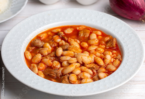 Turkish foods; dried bean, Beans with minced meat (kuru fasulye)