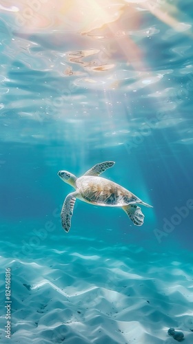 Turtle swimming in the ocean with copy space. World turtle day