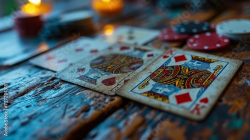playing card, poker, gambling, tabletop, candle, ambience, evening, depth of field, leisure, strategy, sharpened, chips, wood texture, atmosphere, card, king, queen, betting, rustic, money, currency, business, finance, paper, bank, map, cash, euro, dollar, wealth, dollar, banknote, bill, note