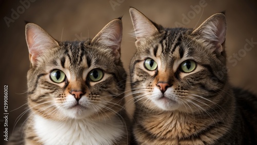 Two Adorable Striped Cats with Green Eyes. Close-Up of Feline Elegance and Beauty