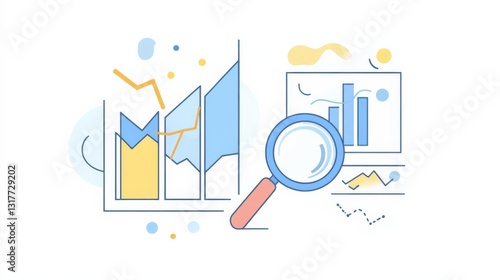 graph, chart, datum, statistic, trend, upward, downward, magnifying glass, search, marketing, business, finance, growth, decayed, economy, investment, analysis, visualisation, technology, web, vector, blue, yellow, gradient, minimal, infographic, performance, report, digital, monitoring, research, financial, optimization, tracking, online