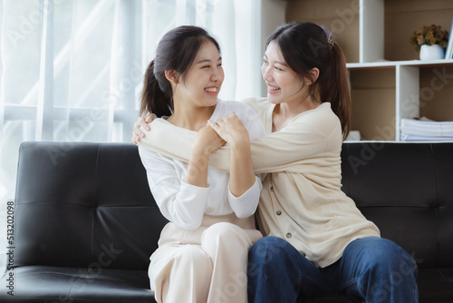 Two beautiful Asian women in a homosexual relationship, queer, gay couple, advocating sexual independence and pride in LGBTQ. Lgbt and love relationship. Supporters of the LGBT community.