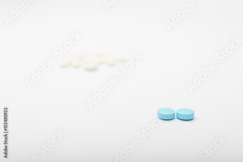 two blu pills medicine on white background
