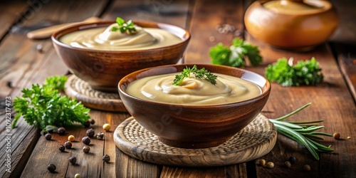 Two Bowls of Creamy Sauce: Culinary Delight with High Depth of Field for Food Photography, Sauces, Cooking Essentials, Kitchen Ingredients, Flavorful Dishes, and More