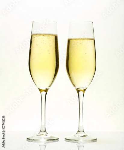 two champagne glasses with a white background.