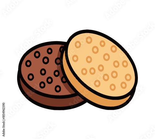 Two chocolate and vanilla biscuits stacked together a simple and colorful cartoon illustration