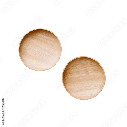Two Empty Round Wooden Plates with Green Branches