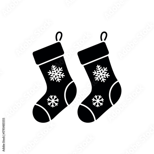 christmas, stocking, stocking, holiday, christmas, festive, gift, gift, present, present, winter, snow, snowflake, snowflake, decoration, decorative, ornament, ornament, tradition, tradition, celebration, celebration, december, joy, merry, seasonal, wintery, hanging, pair, matching, black, white, silhouette, graphic, icon, symbol, design, object, accessory, apparel, footwear, warmth, cosy
