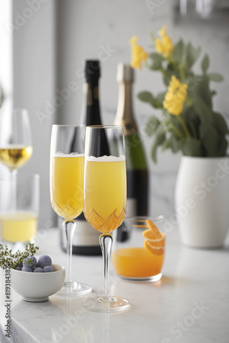 2, goggles, mimosa, cocktail, fresh, white, kitchen, counter, champaign, orange, juice, brunch, elegant, modern, alcoholic, beverage, breakfast, celebration, citrous, fruit, refreshing, summer, drink, sparkling, wine, toast, luxury, lifestyle, home, interior, sunny, bubbly, entertainment, garnish