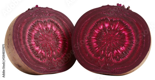 beetroot, beet, vegetable, fresh, healthy, food, red, purple, sliced, halved, isolated, white background, closeup, detail, macro, studio shot, natural, organic, vegetarian, vegan, diet, nourishment, ingredient, produce, market, grocery, agriculture, collection, still life, transparent, cut-out, earthy, sweet, cooking, salad, juice, vibrant, colourful, texture, pattern, single, object, garden