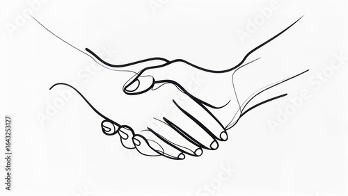 hand, clasped, agreements, deal, partnership, connection, trust, understanding, cooperation, friendship, contract, support, handshake, line, continuous, outline, simple, black, white, art, graphic, design, image, illustration, gesture, contact, business, formal, meeting, human relationships, teamwork, success, commitment, solidarity, symbol, simplicity, modern, contemporary, elegant