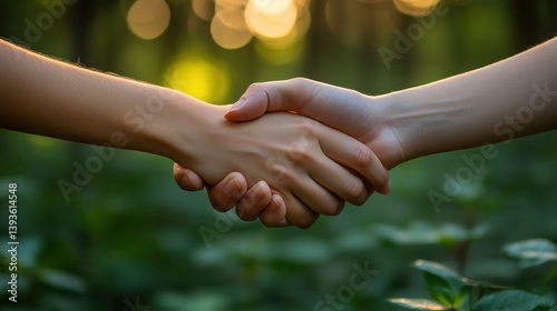 handshake, hand, oneness, trust, connection, partnership, agreements, cooperation, friendship, support, nature, outdoors, greenery, sunlight, bokeh, blurred background, teamwork, collaboration, peace, harmony, gesture, emotion, feeling, human relationships, bond, concept, symbolic, business, personal