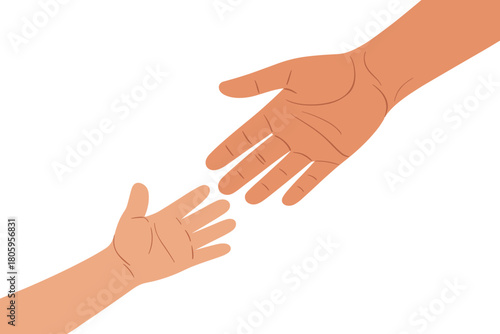 hand, reaching, help, support, assistance, connection, human relationships, partnership, rescue, giving, take, handshake, charity, donation, trust, care, community, together, children, adult, parenting, family, vector, illustration, graphic, flat, minimalist, human, concept, kindness