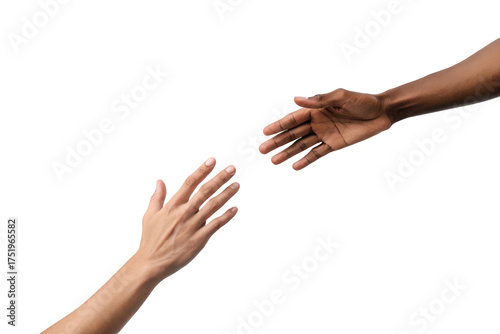 Two Hands Reaching Out Interracial Harmony and Connection Against Black Background
