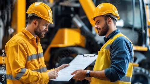 man, yellow, safety, gear, discussing, plan, construction, hard, wearing, vest, project, hat, men at work, professional, people, engineer, building, working, helmet, site, architect, industrial, teamwork, business, male, contractor, caucasian, occupation, 2, blueprint, manager, job, hard hat, protection, architecture, equipment, design, outdoors, adult, holding, together, team, young, development, supervisor, talking, looking, pointing, factory