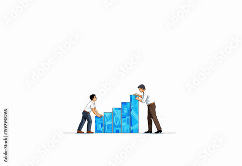 man, building, block, stacking, growth, graph, teamwork, collaboration, together, progress, construction, blue, chart, design, business, strategy, success, creative, visual, work, education, learning, development, partnership, help, support, children, adult, modern, artistic, office, indoor, abstract, male, upward, climb, achievement, leader, effort, friendship, project, oneness, childlike, motivation, perspective, innovation