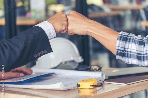 Two Men team fist bump Business Partner Businessman Trust Teamwork Partnership Industry contractor dealing mission business. Mission Business team meeting group of People Fist bump Hands together