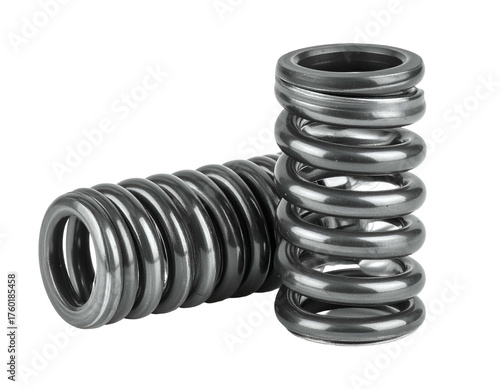 Two metallic coil springs on a black background, with visible cylindrical windings