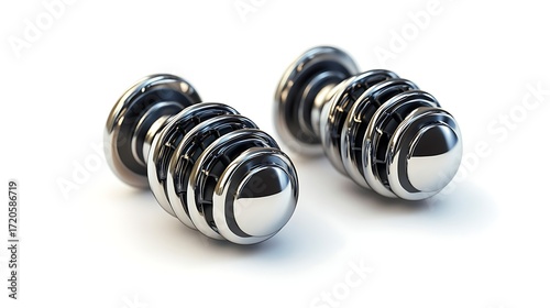 Two Metallic Dumbbells Isolated on White Background for Strength Training Fitness