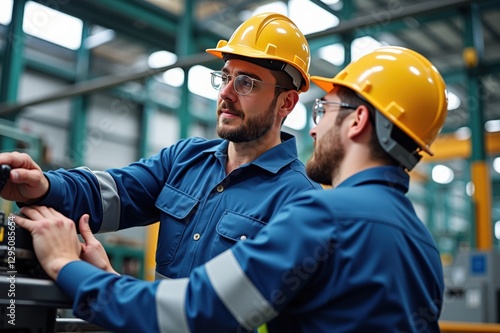 men at work, male, collaboration, industrial, machinery, safety, hard hat, engineering, factory, teamwork, employee, blue, overall, building, production, equipment, tool, manufacturing, process, training, professional, workshop, operation, company, industrialism, construction, task, gear, inventory, transportation, material, system, manpower, skilled, supervision, development, mechanic, precision, innovation, assembly