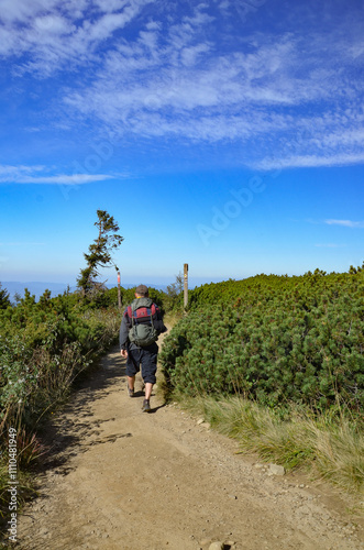 two tourists on the trail from Korbielów to Pilsko in the Beskid Mountains