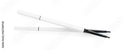 Two twist up eyebrow pencils isolated on white, top view