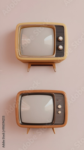 two vertical minimal tvs monitor toys, 3d render tv screen classical cute old square design realistic rendered classic vintage antique retro retrospect illustration in empty space cartoon