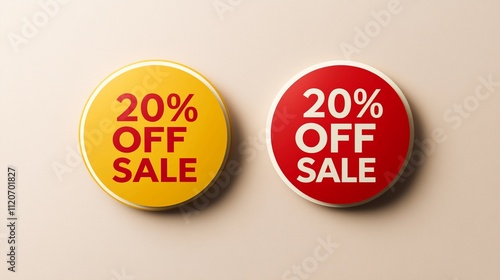 Two vibrant circular sale tags showcasing 20 percent off offers for a modern promotional campaign