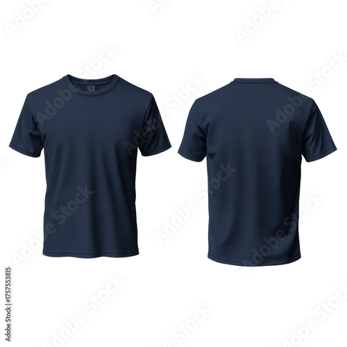 t-shirt, shirt, clothing, apparel, fashion, garment, textile, fabric, navy blue, dark blue, plain, basic, casual attire, menswear, male, front view, backview, template, design, blank, studio shot, isolated, cut-out, product, top, sleeve
