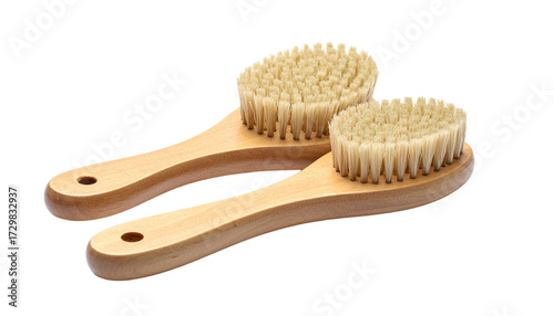 Two wooden facial cleansing brushes isolated on transparent background