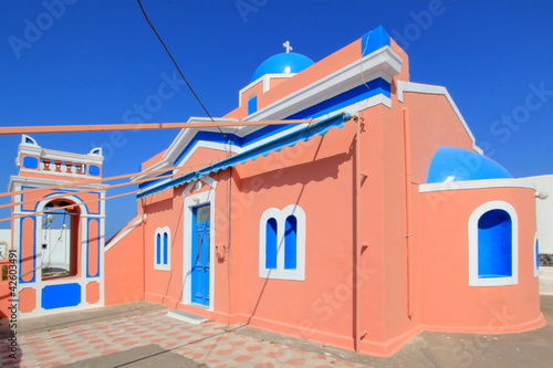 architecture, church, dome, greece, greek, orthodox, religion, religious, santorini, arch, blue, construction, cross, cyclade, destination, ia, island, landscape, mediterranean, oia, pink, red, scenic, town, traditional, typical, view, white