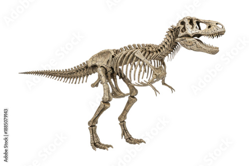 Tyrannosaurus Rex Skeleton Fossil Displayed on White Background