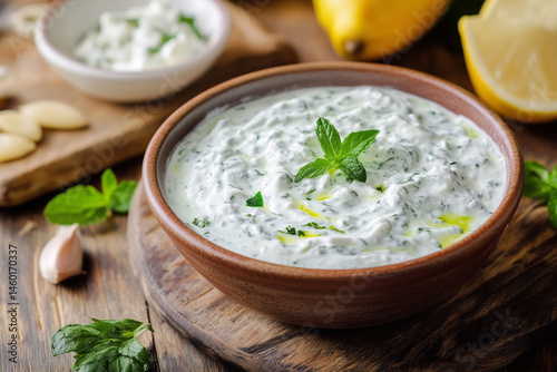 tzatziki, sauce, greek, yogurt, garlic, cucumber, dill, lemon, fresh, creamy, dip, white, herb, dressing, healthy, traditional, cookery, cold, snack, bowl, vegetarian, mint, olive, lemony, natural, parsley, spice, chilled, thick, texture, dairy, condiment, ingredient, refreshing, food, mediterranean, taste, cook, lunch, dinner, sour, spoon, organic, simple, green, pepper, dish