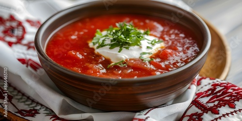 ukrainian, family, dinner, traditional, sour, cream, embroidered, tablecloth, eastern, european, cookery, homemade, comfort, food, beet, soup, slavic, culinary, heritage, generation, receipe, hearty, delicious, nourishing, authentic, cultural, festive, gathering, special, occasion, celebratory, rich, flavorful, vibrant, red, vegetable, creamy, garnish, dill, garlic, onion, potato, carrot, cabbage, broth, satisfying, warm