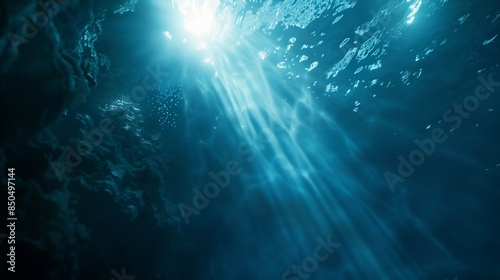 Underwater Sea Deep Abyss With Blue Sun light : Generative AI