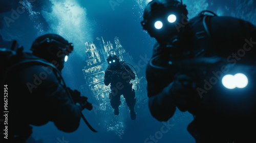 underwater, special forces, military, scuba diving, combat, exploration, team, deep sea, stealth, light, teamwork, adventure, security, diving, action, strategy, covert, night